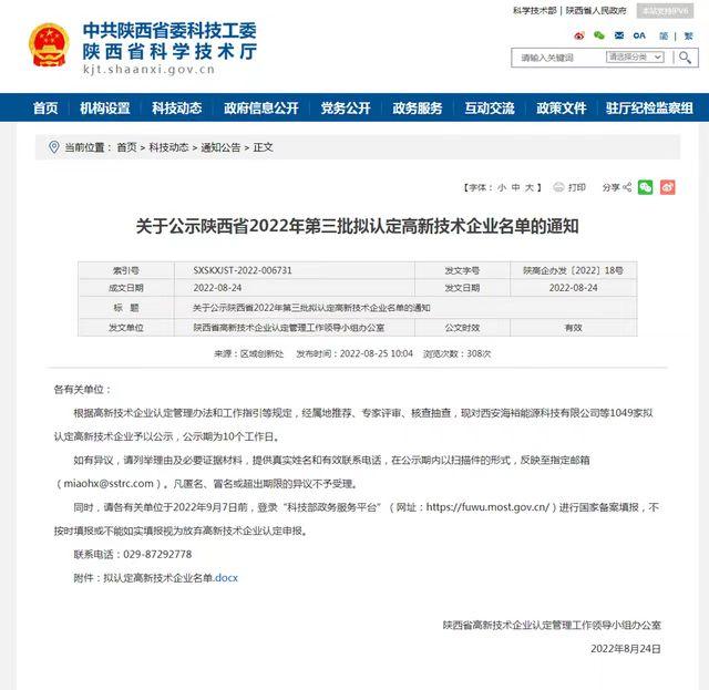近日,陜西省科學技術廳公布了2022年第三批擬認定高新技術企業名單,陜西煤業化工集團神木電化發展有限公司上榜。