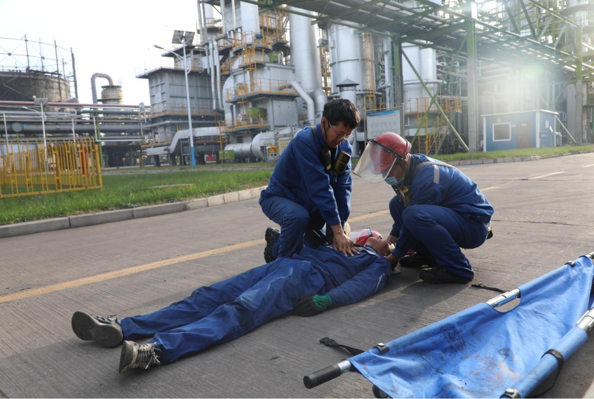 “報告,現(xiàn)場聽到有毒氣體檢測探頭報警,一名外來施工人員倒地,請求支援!”“報告調(diào)度室,制氫車間硫回收裝置發(fā)生氨氣泄漏事故,請調(diào)度室通知上下游車間做好相應(yīng)防護和人員疏散準備!”“報告,加氫車間應(yīng)急隊員4名,防化服2套,霧化消防水槍頭1個,移動消防水炮1臺,消防水帶4盤,前來救援,請指示!”……隨著一聲聲匯報,演練在緊張有序地開展。保衛(wèi)警戒組、應(yīng)急保障組、應(yīng)急處置組、通訊聯(lián)絡(luò)組、物資供應(yīng)組、事故調(diào)查組、生產(chǎn)保障組、現(xiàn)場監(jiān)測組等應(yīng)急小組按照應(yīng)急預(yù)案快速響應(yīng),有序進行相應(yīng)的救援工作,各小組聽從指揮、統(tǒng)一行動、緊密配合,確保了本次突發(fā)事件的及時處置。最終,經(jīng)過大家的共同努力,圓滿完成了此次演練任務(wù)。