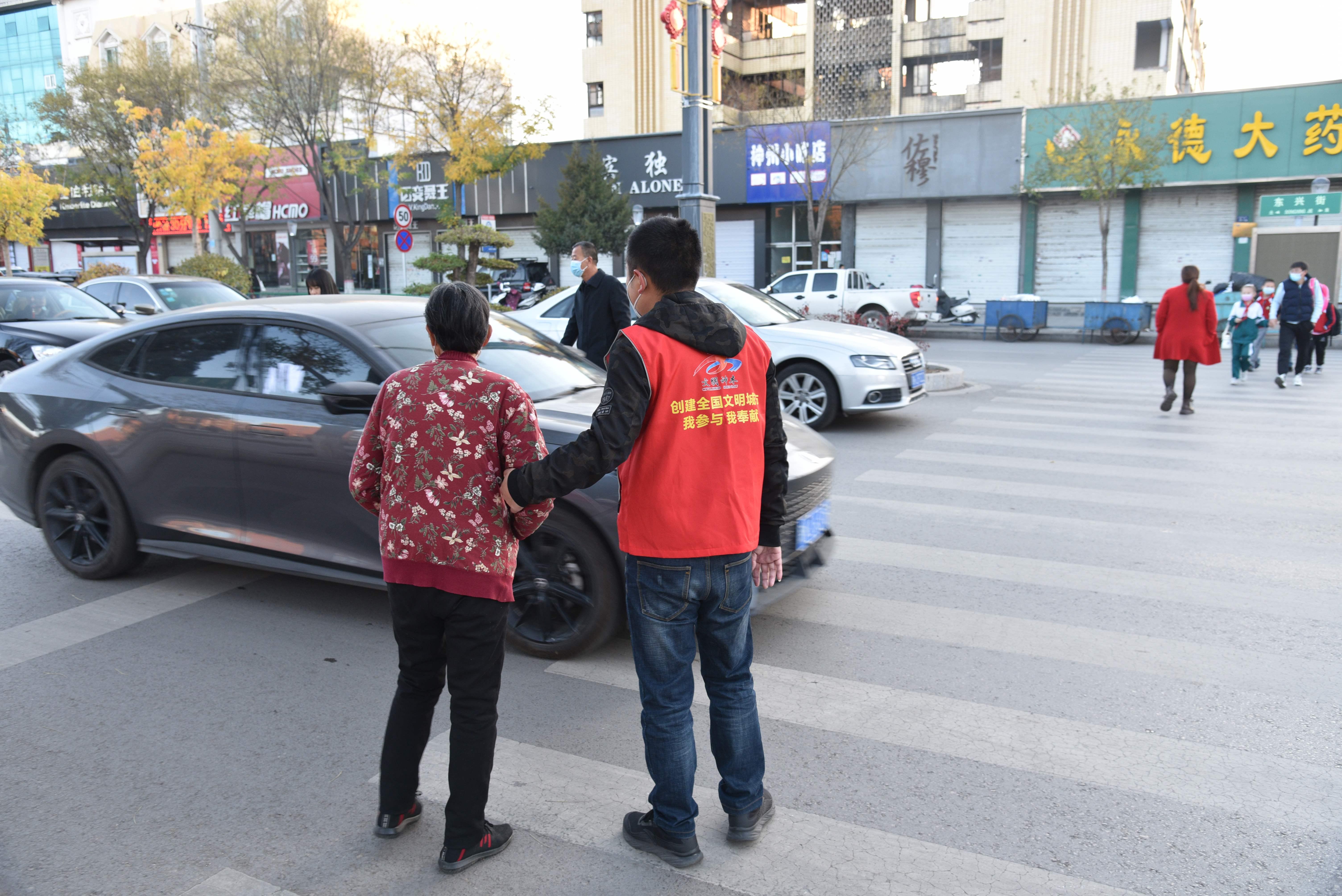 “小朋友,過斑馬線是不能跑的,你看往來的車輛這么多,很危險的,要隨時注意安全”“阿姨,您別怕,我來扶您過馬路”志愿者郭春虎護(hù)送正要上學(xué)的小朋友和老人過馬路,并給他們講解交通知識。紅色的身影成為城市文明的“活名片”,他們的笑容和善意的提醒贏得了過往行人的一致好評。
