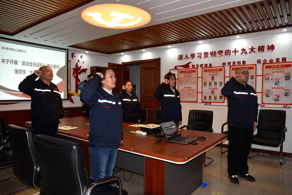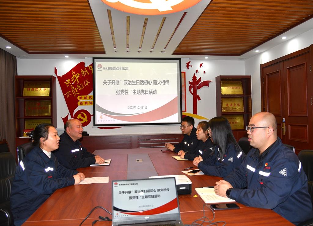 10月31日,神木煤化工泰和公司綜合黨支部在四樓黨員活動室,舉行“政治生日話初心,薪火相傳強黨性”主題黨日活動,活動由支部書記葉萍主持,支部全體黨員參加了活動。