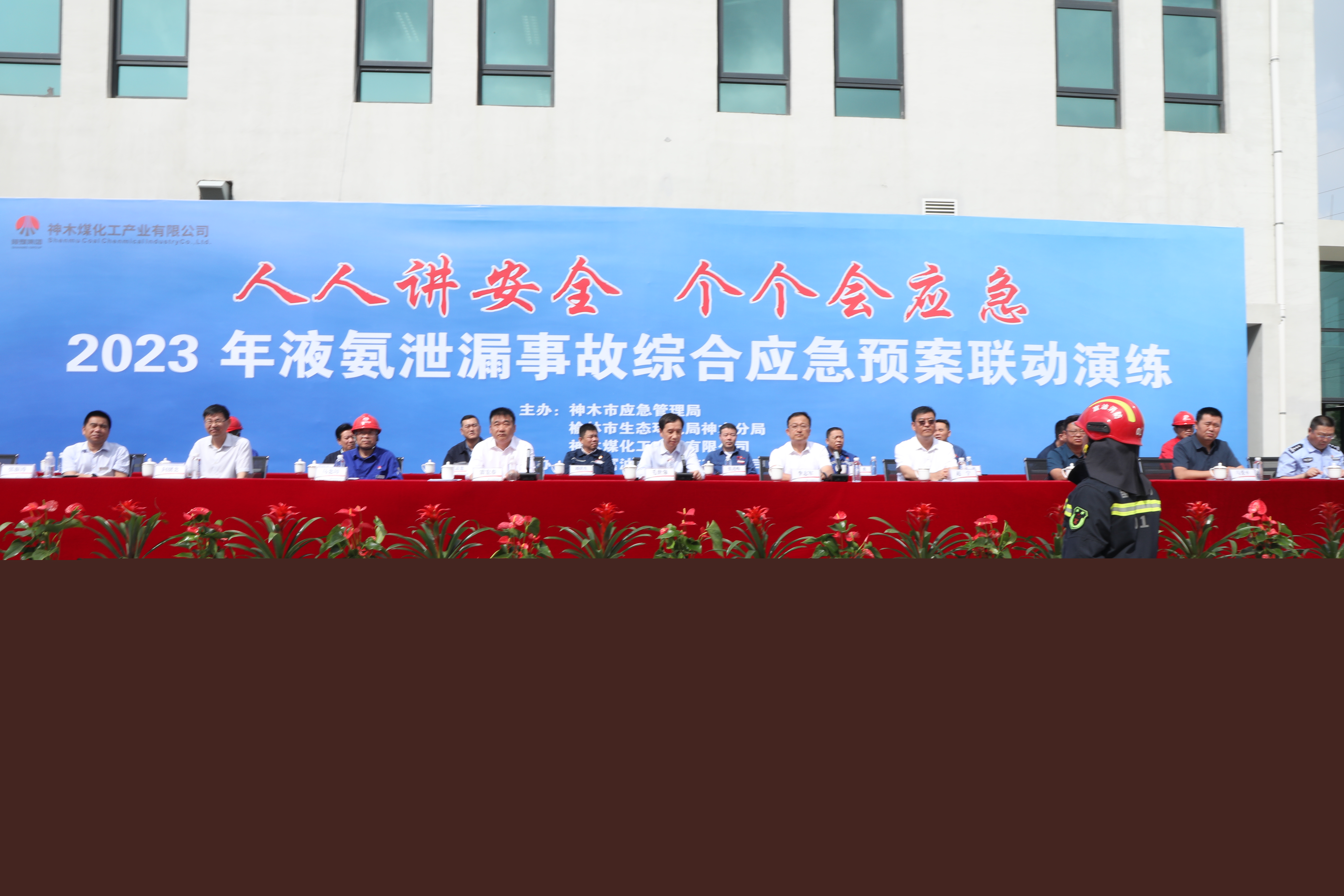 “我宣布,神木煤化工公司2023年液氨泄漏事故綜合應急預案聯動演練現在開始!”隨著神木煤化工黨委書記、董事長毛世強一聲令下,演練正式開始。