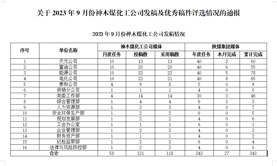 關(guān)于2023年9月份公司發(fā)稿及優(yōu)秀稿件評(píng)選情況的通報(bào)