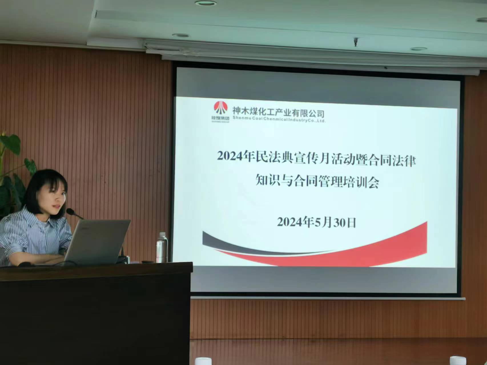 5月30日,神木煤化工公司開展2024年“民法典普法宣傳”活動暨合同法律知識與合同管理專題培訓。公司黨委副書記、總經理辛文輝,副總經理、總法律顧問張振濤,各職能部門及所屬各單位相關人員等70余人參加培訓。