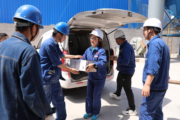 “感謝公司領導在如此炎熱的天氣里,心念員工,還來送降暑物品,此時我心里充滿了幸福感,今后將更加恪盡職守,努力做好本職工作。”脫硫車間的員工張健笑著說道。隨后慰問組一行人走訪慰問了電石車間、原料車間、二期集控樓、檢修分廠。瓜香四溢、溫情送水,“送清涼”活動得到了一線職工的贊成與肯定。