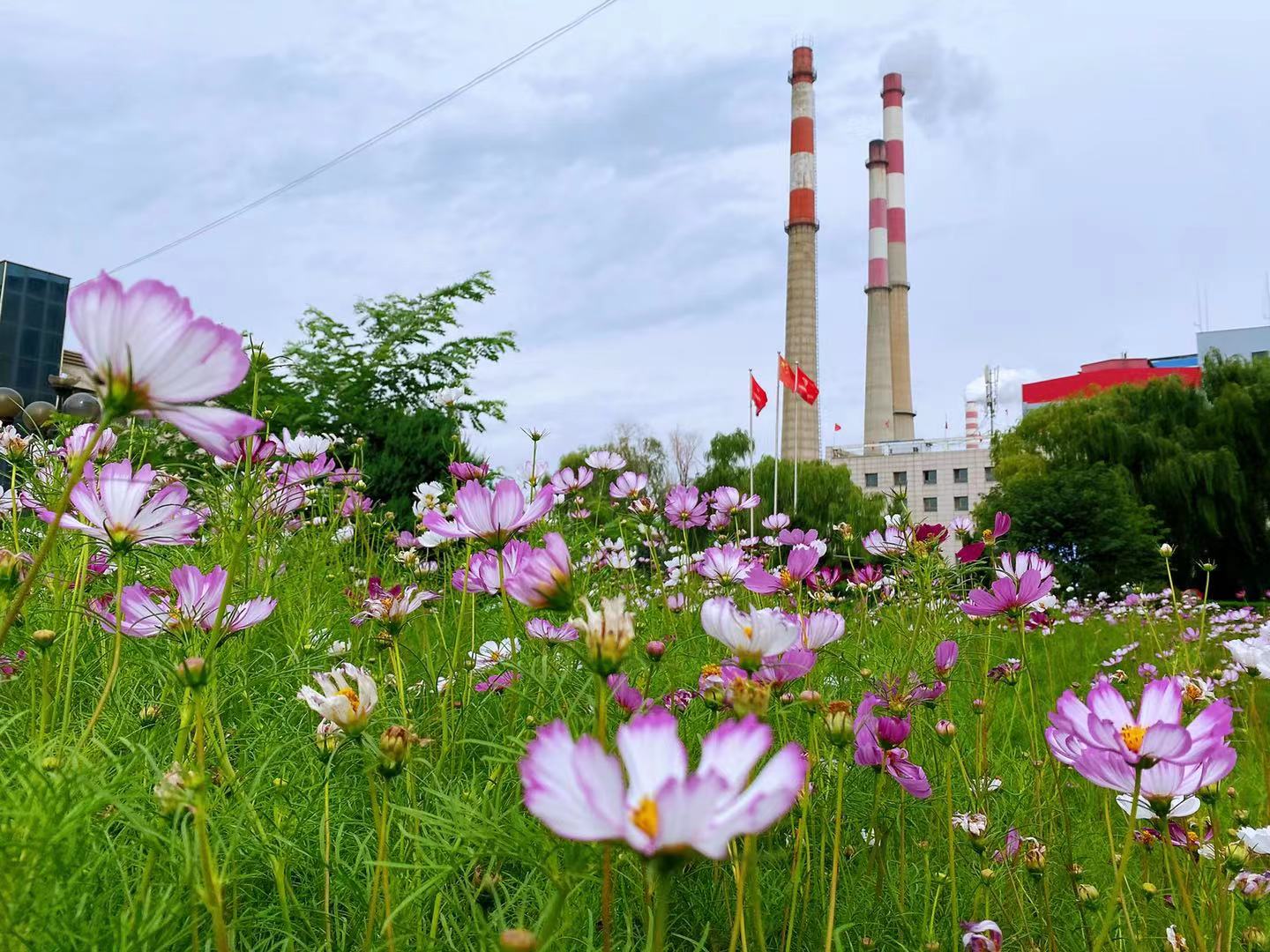 綠蔭、草地、辦公樓前金菊和矮牽牛間錯種植,芳香四溢,生活區(qū)一簇簇格?;ǜ傁嚅_放,蜂蝶飛舞,電石生產(chǎn)區(qū)、化驗樓前到處鮮花盛開、綠滿枝丫。