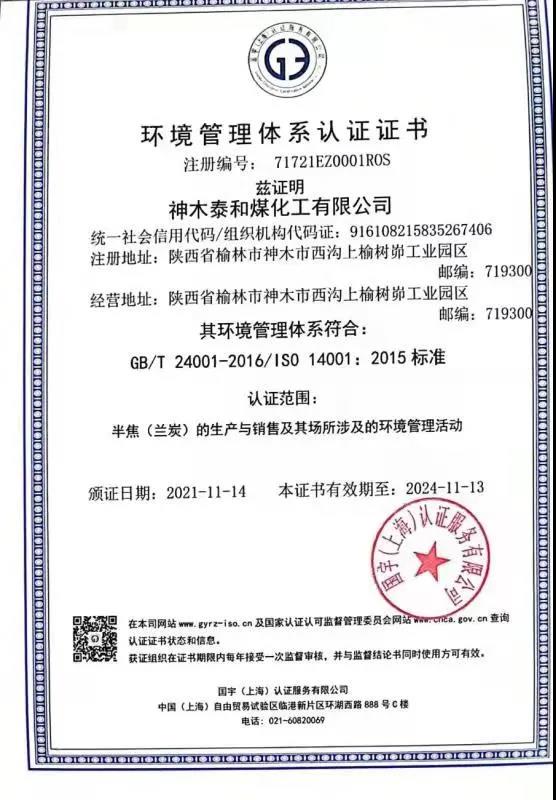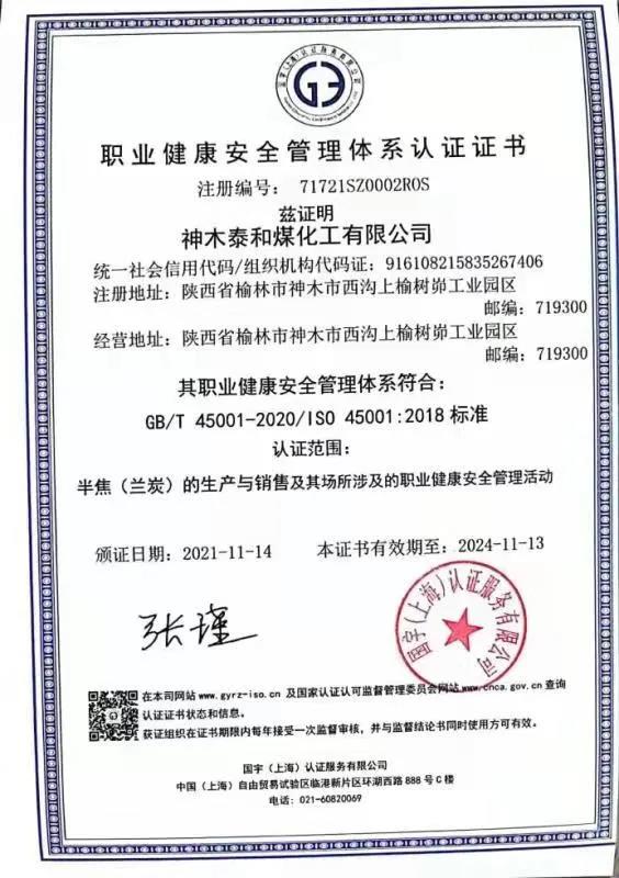 近日,神木煤化工泰和公司喜獲質量管理、職業健康安全管理、環境管理三個體系認證證書,泰和公司生產經營水平再上新臺階。2021年,泰和公司對照管理體系建設標準,不斷優化并落實各項管理舉措,持續深化管理并取得實效。